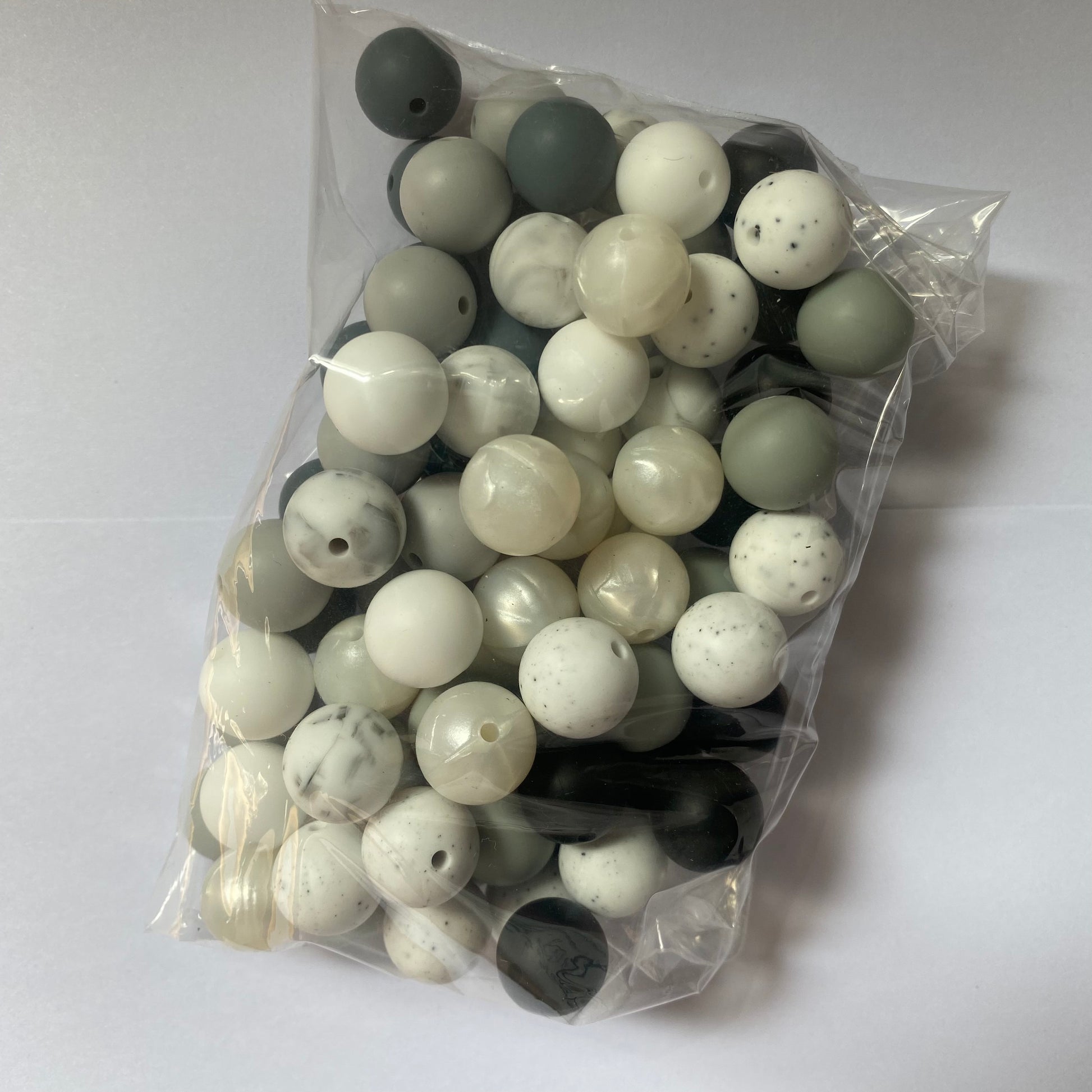 15mm Silicone Round Bead Pack | Shades of Monochrome 🩶