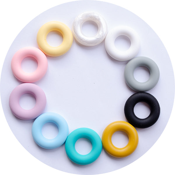 These stunning silicone teething rings are available in 40mm diameter and available in 10+ stunning colours.