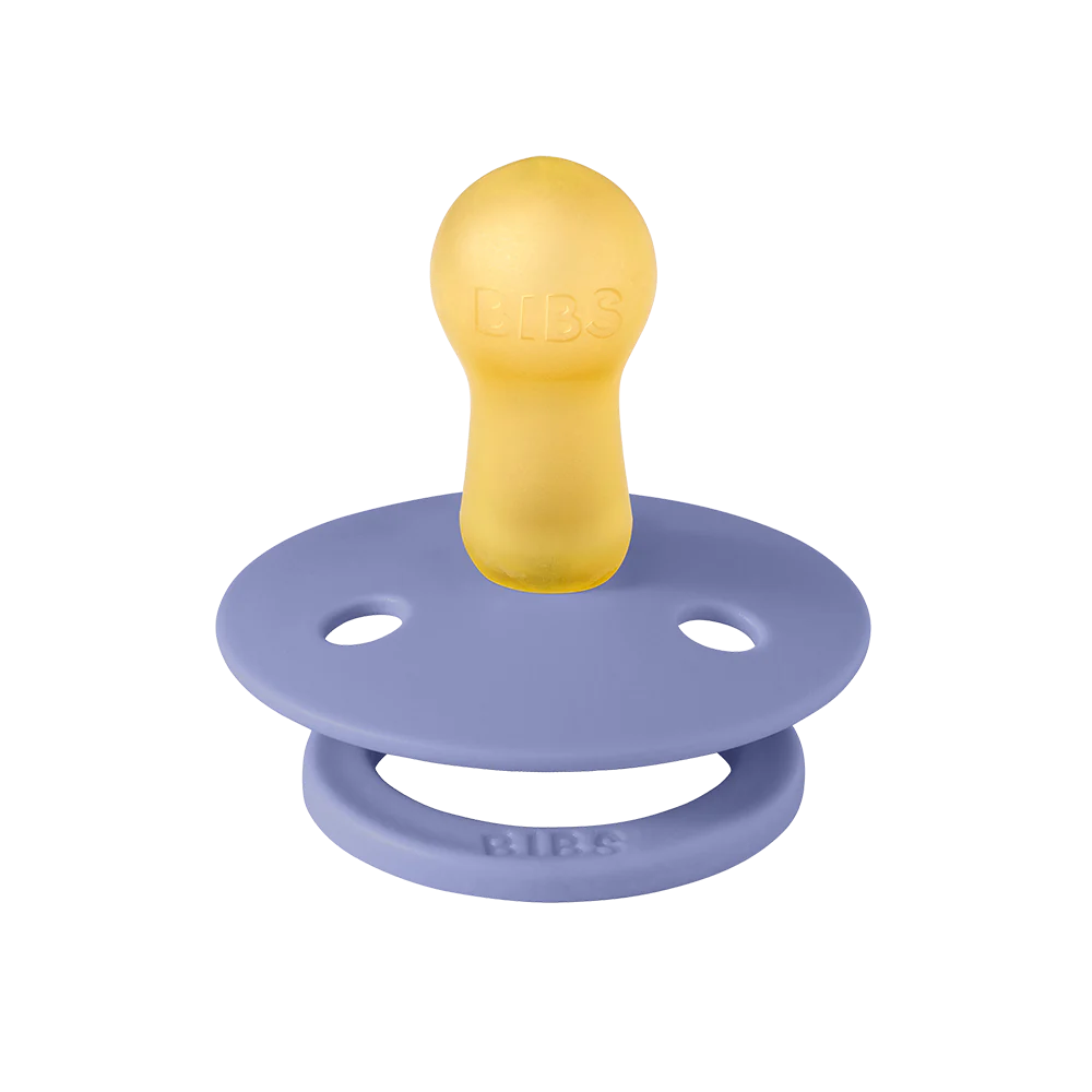BIBS Colour is the original pacifier with a round shield and a cherry shaped nipple. The cherry shaped nipple and matte lightweight shield is designed to imitate the shape of a mother’s breast.