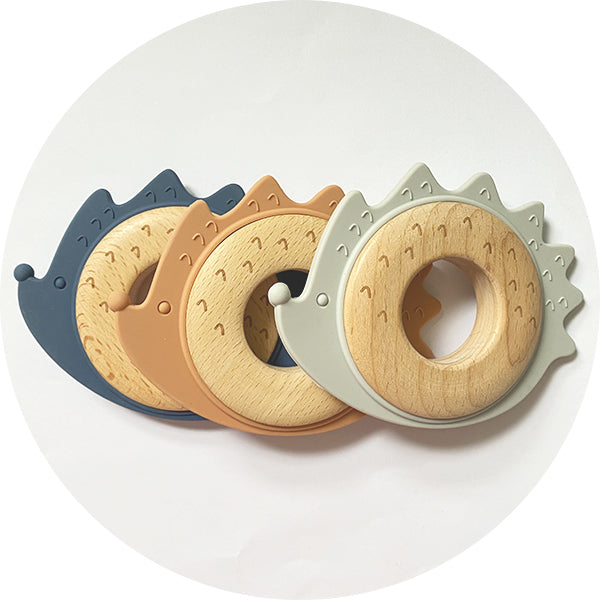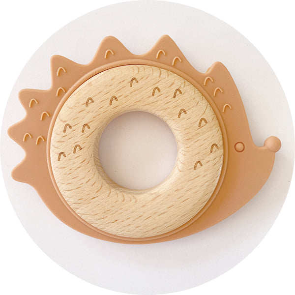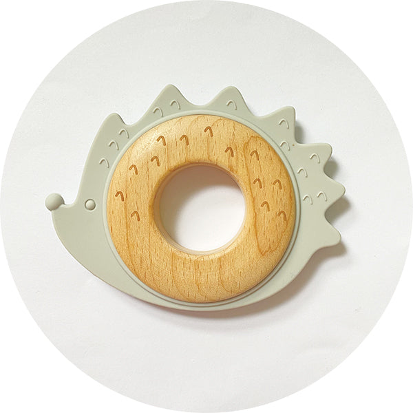 Silicone & Wooden Hedgehog Teether