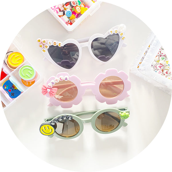 Name something better than sunglasses and beads/decor... You just need a hot glue gun, letter beads, cute spacer beads, sunglasses and a creative idea.