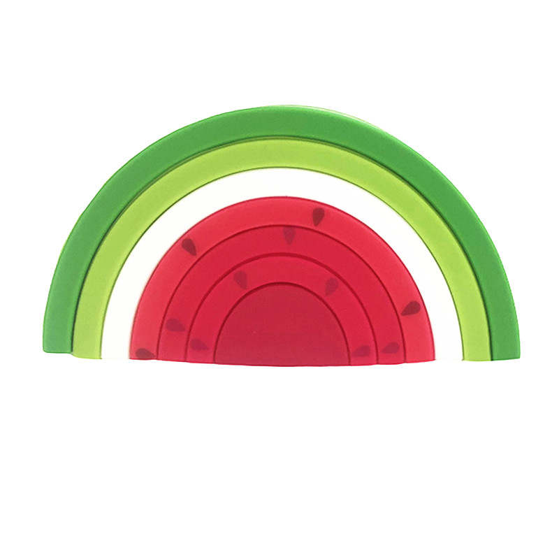 Watermelon stacking toys are open ended toys. Open ended toys are toys that leave it up to the child to create a story in and around the game. In this way, the toy strengthens the child's imagination and creativity. The Silicone Rainbow Stacker is a 6 piece rainbow that can be used as a teether, for stacking, for building or even as bath toys.