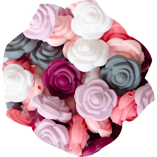 Loose, Mini Rose silicone beads, 21mm diameter, in 6+ stunning colours.