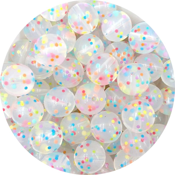 Loose, silicone confetti beads, available in 9mm, 12mm, 15mm, 19mm round silicone bead