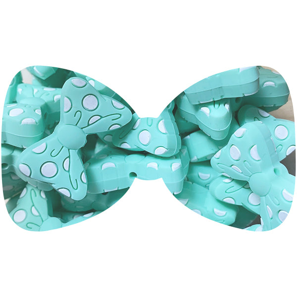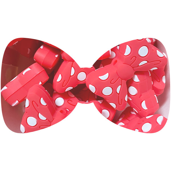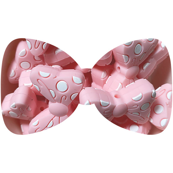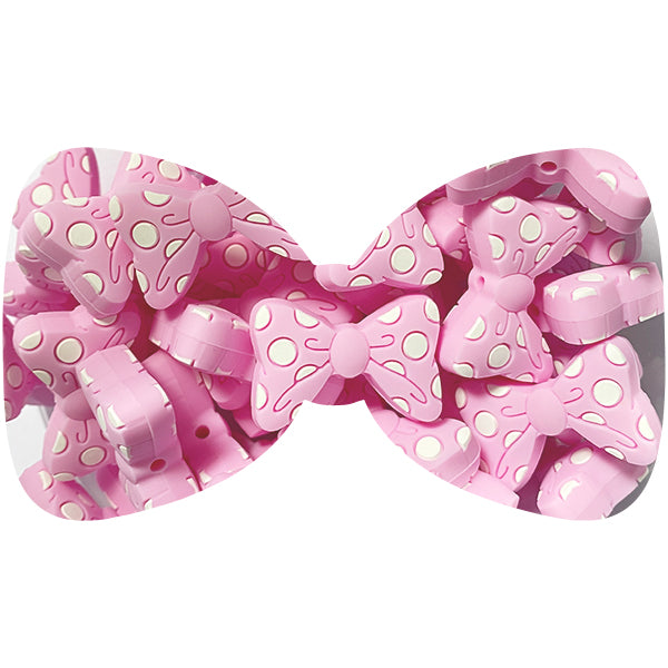Loose, dotty bow silicone bead. The perfect compliment for all your pacifier clip designs and details.
