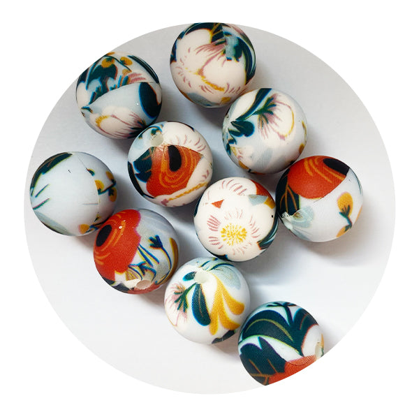 Beautiful printed silicone beads to help accessorise all your crafting projects! Our printed beads come in a variety of styles, shapes and patterns and are perfect for dummy clips, keychains, tags, wrist bracelets and other silicone bead crafts.
