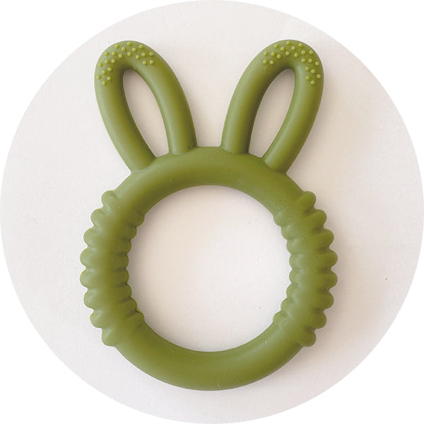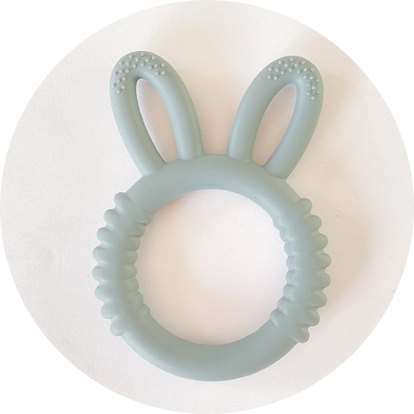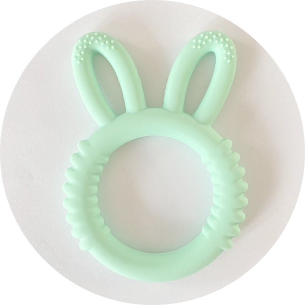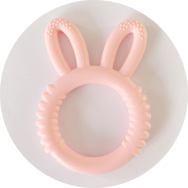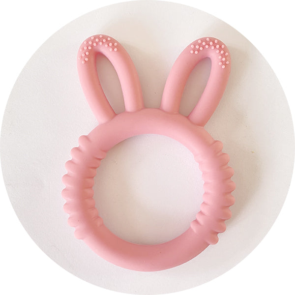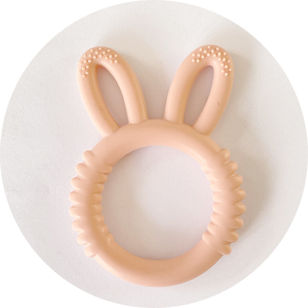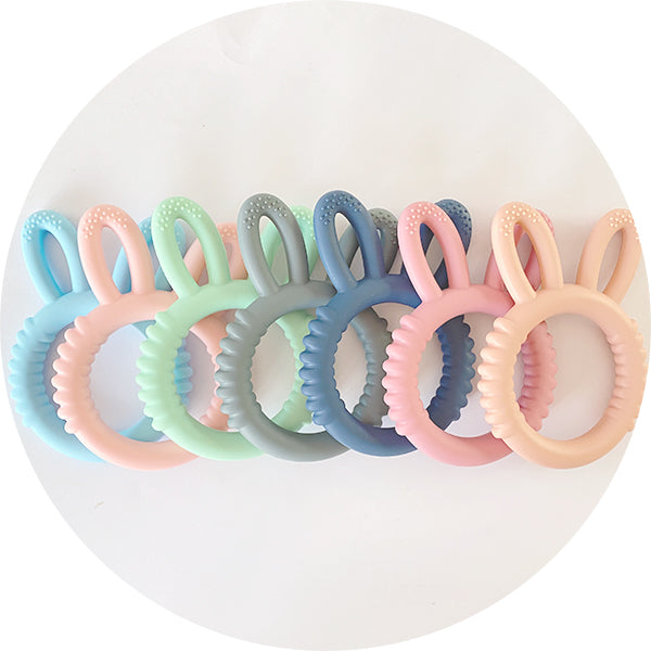 Our bunny ear teether is ready to provide soothing help for teething and itchy gums. The raised bumps on the ears and ridges on the side will provide extra sensory relief.