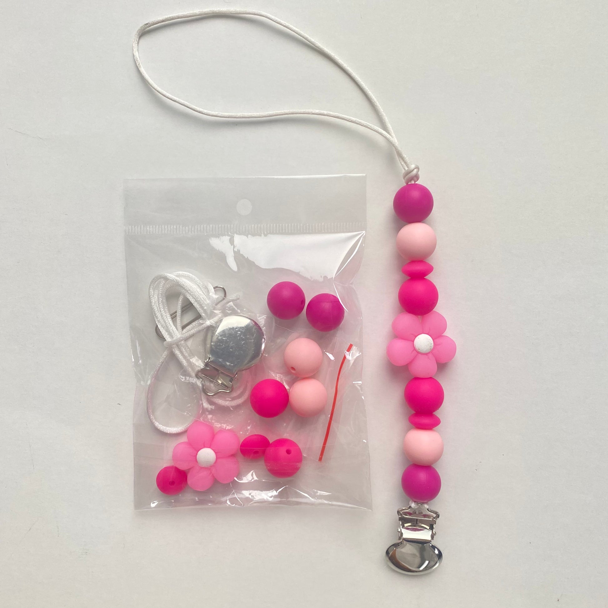 Each kit comes with all of the supplies you'll need to make your very own silicone pacifier/soother clip! For a detailed step-by-step on how to make these pacifier clips, head over to our handy DIY Tutorial here.
