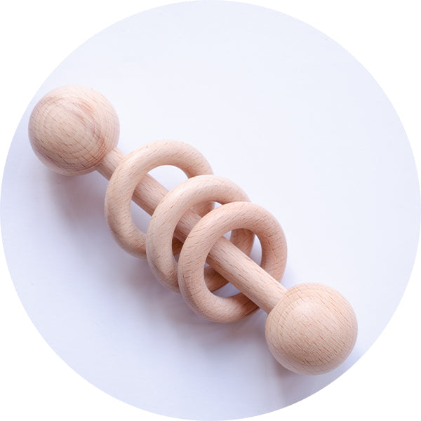Our wooden rattles are made from durable, non-toxic beech wood.